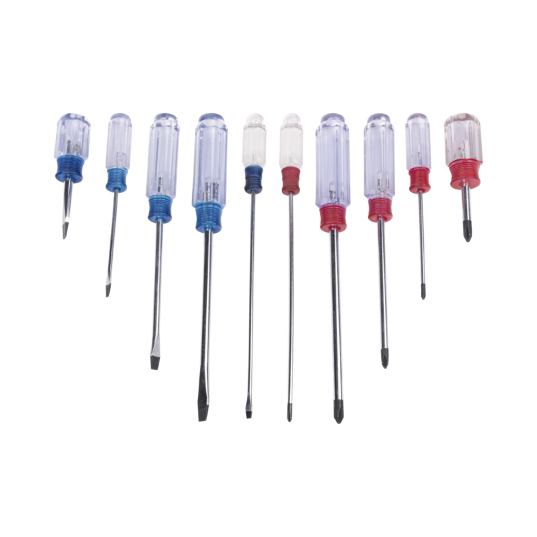 Juego de 10 Desarmadores Mango Plástico (Uso Ligero), Puntas magnética, 5 Puntas Planas (-) y 5 Puntas Phillips. (+)