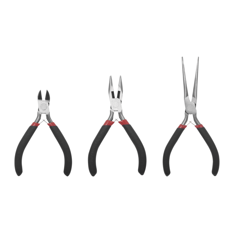 Juego de 3 Mini Pinzas de Corte de 5″. Incluye: Pinza de Punta Redonda, Diagonal y Punta de Aguja.