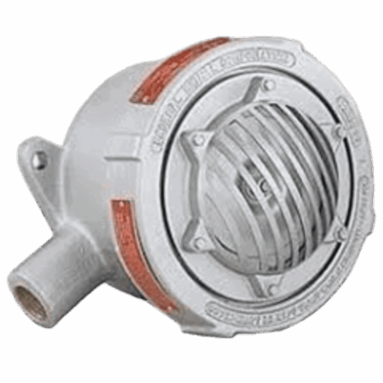 Bocina Vibrante a Prueba de Explosión Modelo 41X con Carcasa de Aluminio Resistente a la Corrosión / 120VAC, 240VAC, 24VDC / Volumen Ajustable / Ciclo de Trabajo 5 Minutos / Montaje en Tubería o Superficie