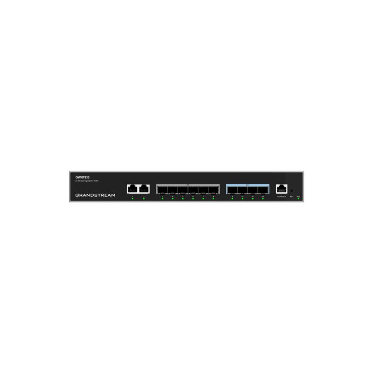 Switch de Agregación Capa 3 GWN7830 / 2 Puertos Gigabit Ethernet / 6 Puertos Gigabit SFP / 4 Puertos 10Gigabit SFP+ / QoS Integrada / Soporte IPv6 e IPv4 / Seguridad Avanzada / Stacking /