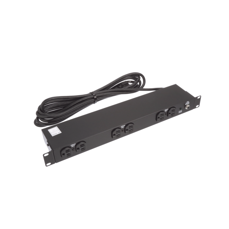 PDU Monitoreable de Transferencia Automática ATS (Fuente Redundante), Con 10 Salidas 5-15R, Enchufes de Entrada NEMA 5-15P, Instalación Horizontal de 19in, 1UR, 15 Amp, 120 Vca