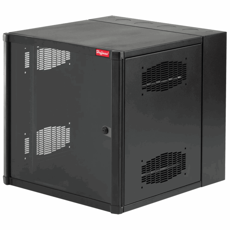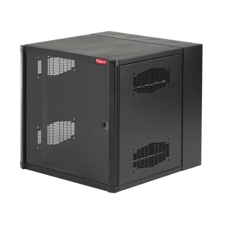 Gabinete AccessPlus de Montaje en Pared de 19in, Rieles Numerados y Roscados #10-32, Puerta con Ventana de Seguridad, 700 mm de Ancho, 637 mm de Profundidad, 12 UR, Color Negro