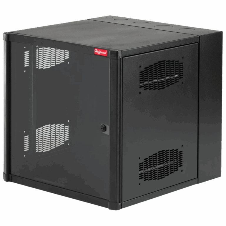 Gabinete AccessPlus de Montaje en Pared de 19in, Rieles Numerados y Roscados #10-32, Puerta con Ventana de Seguridad, 600 mm de Ancho, 637 mm de Profundidad, 12 UR, Color Negro