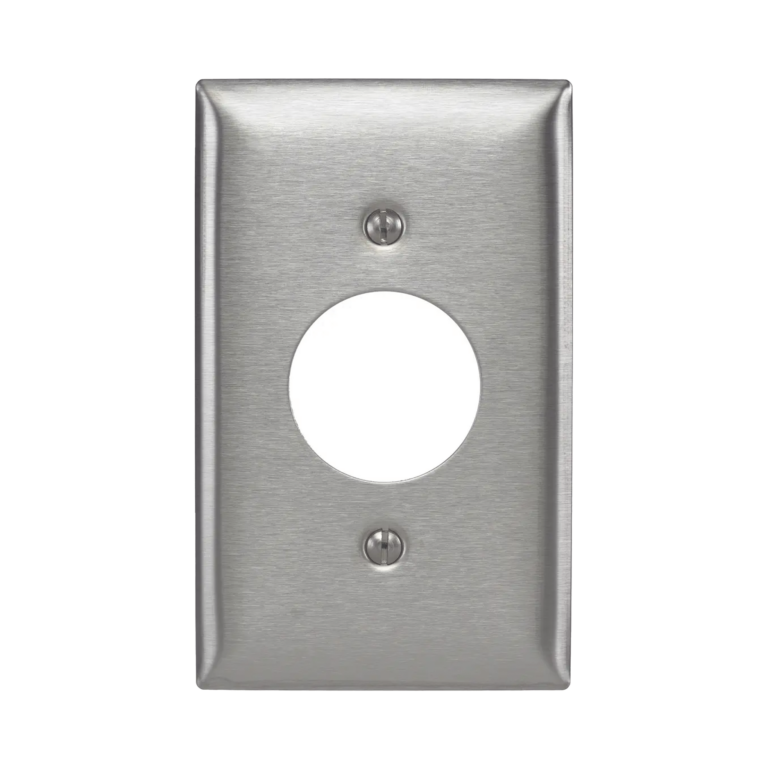 Placa para Receptáculo Sencillo de 15 y 20 A de Entrada Recta y para Receptáculo de 15 A de Media Vuelta/ 1.4″ (35.56 mm) / Acero Inoxidable.