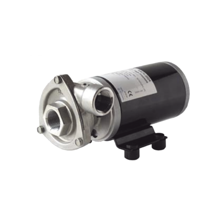 Bomba centrifuga Cyclone de baja presión a 12 Vcd, caudal de hasta 29 GPM, presión máxima de 8.7 psi, en acero inoxidable.