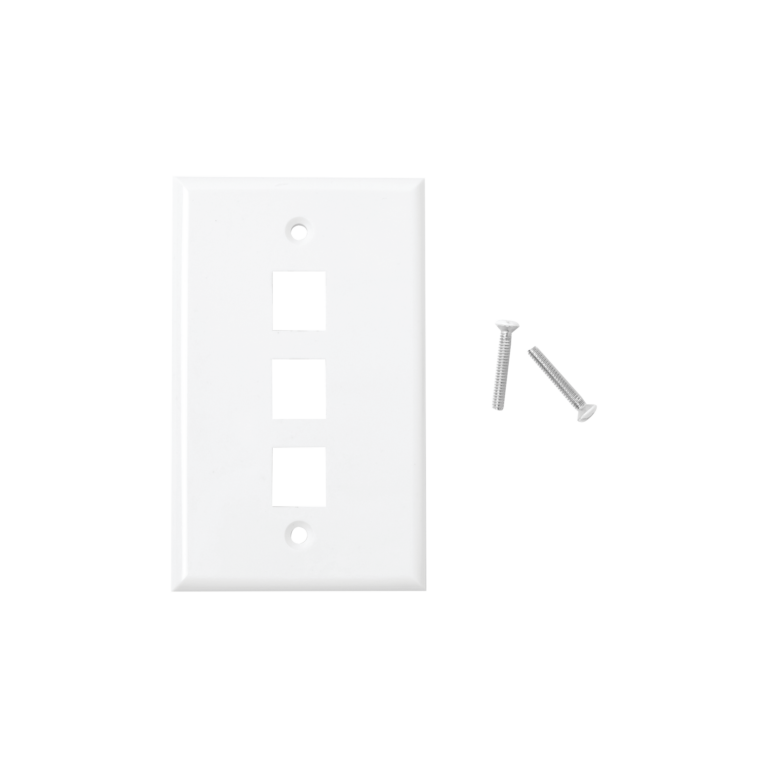 Placa de pared, de 3 puertos, Keystone, con espacio para etiqueta – Color Blanco