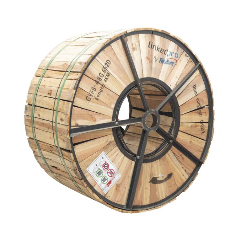 Carrete de 4 km de Fibra Óptica para Exterior G.652D, Armada, Monomodo de 48 Hilos, Loose Tube, Color Negro, Para Instalación en Ducto Subterráneo o Enterrado Directo