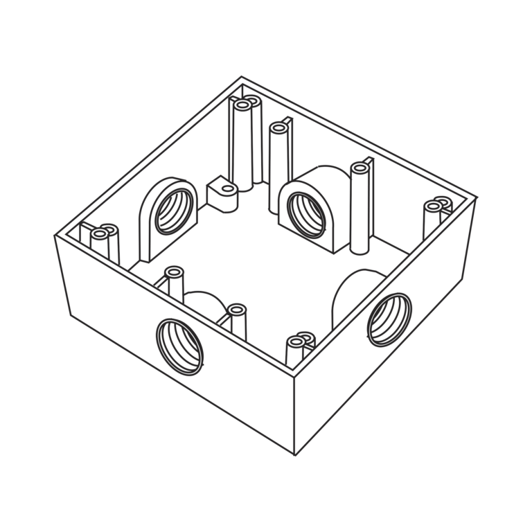 Caja Cuadrada de 3/4″ (19.05 mm) a Prueba de Intemperie/ Cuenta con 4 bocas.
