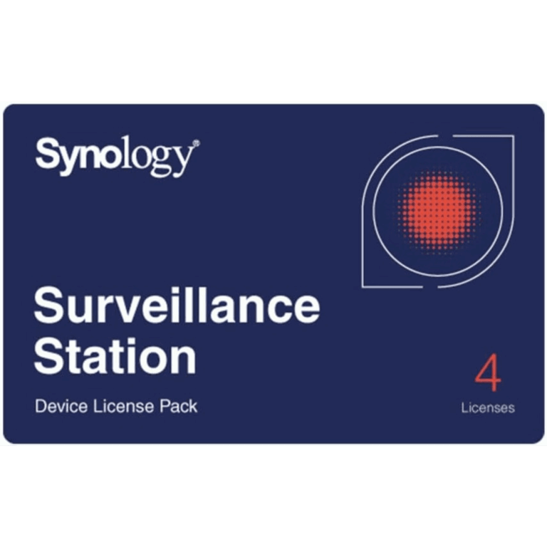 Licencias de Dispositivos de Vigilancia Synology | Paquete de 4 Licencias | Compatibilidad con Cámaras IP, Módulos de E/S, Altavoces IP | Gestión Centralizada CMS | Licencias Predeterminadas Incluidas.