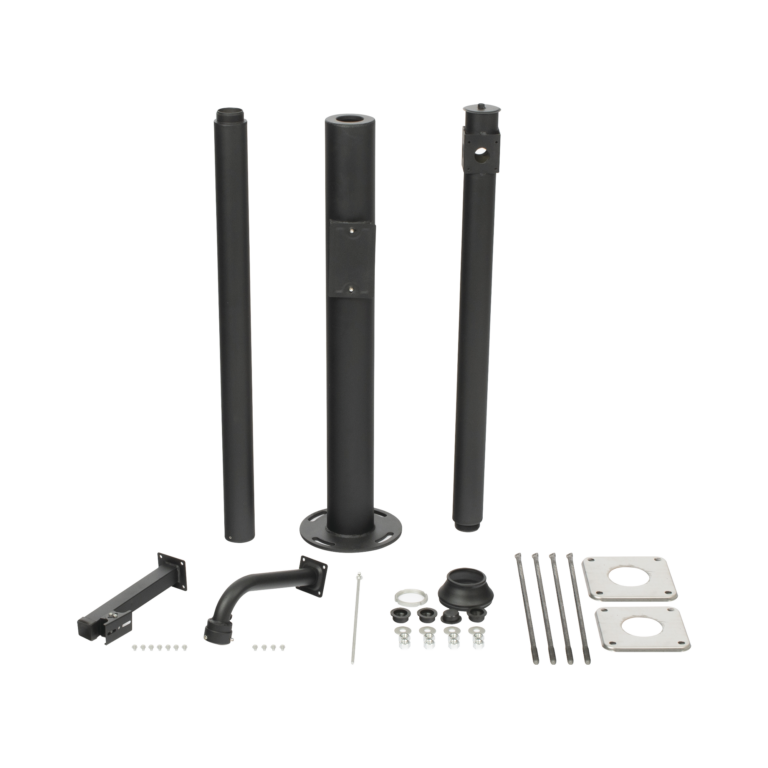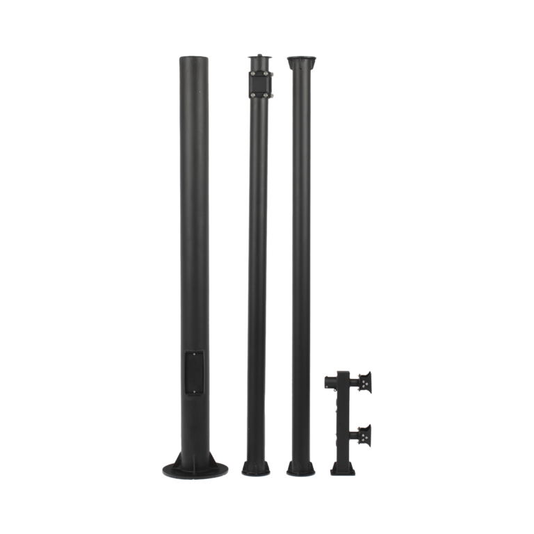 Poste Seccionado de 3 Metros / Especializado para la Instalación de Videovigilancia / Incluye Base de Cimentación y Brazo para Cámara PTZ / Color Negro