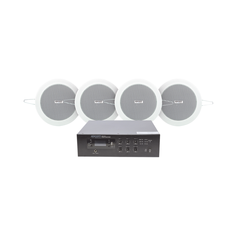 KIT de Amplificador de 120W para Escritorio | 4 Altavoces 6″ | Montaje en Techo | 20W | 70/100V