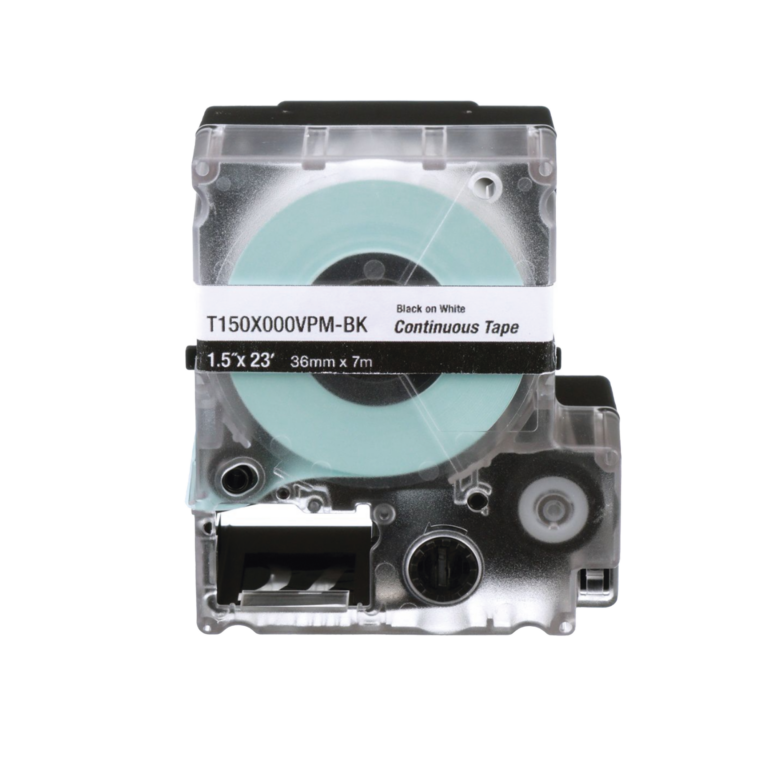 Casete de Etiquetas de Vinilo de Cinta Continua, Color Negro Sobre Blanco, Uso Interior/Exterior, 36 mm (1.5 in) de Ancho x 7.6 Metros de Largo