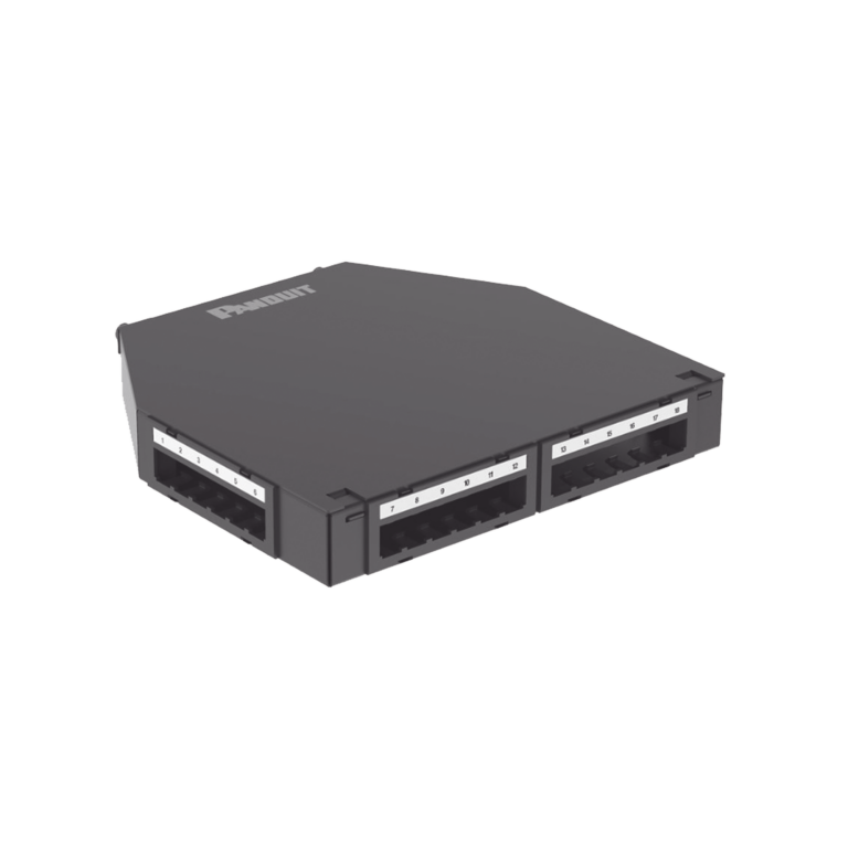 Punto de Consolidación de 12 Puertos Mini-Com, Instalación en Piso, Pared o Techo, Fabricado en Acero, Color Negro