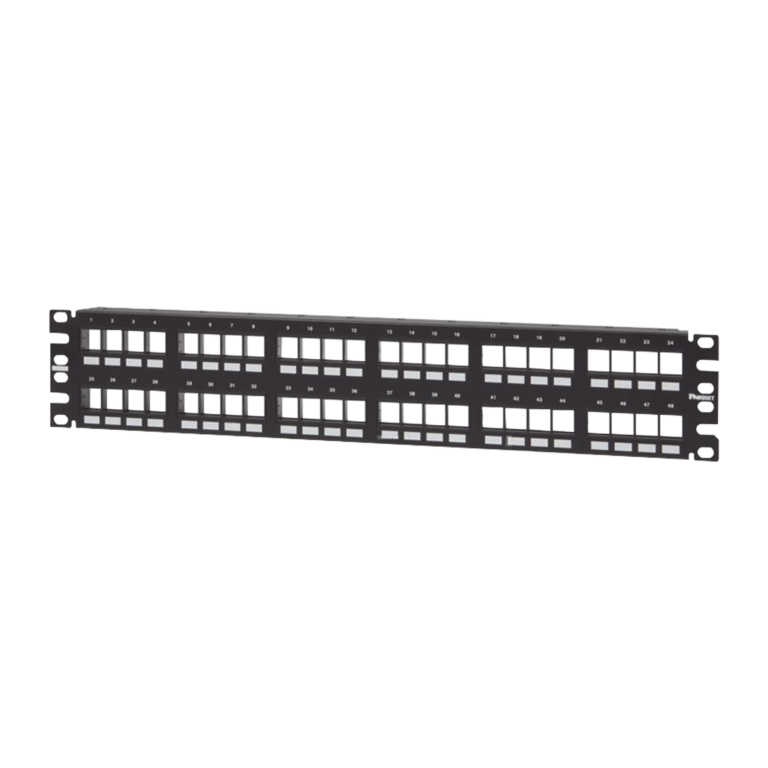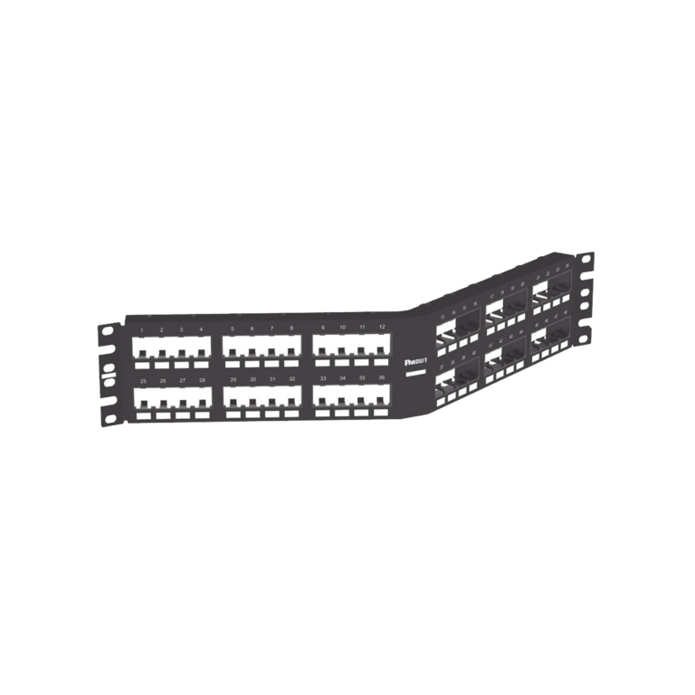 Panel de Parcheo Modular Mini-Com (Sin Conectores), Angulado Instalación la Ras, Sin Blindaje, de 48 puertos, 2UR