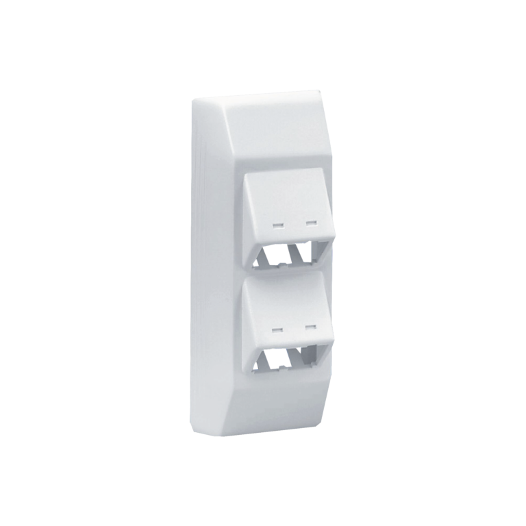 Soporte Con 4 Puertos Mini-Com, Con Bisagras de Instalación a Presión, Para Canaletas T45, Material PVC Rígido, Color Blanco Mate