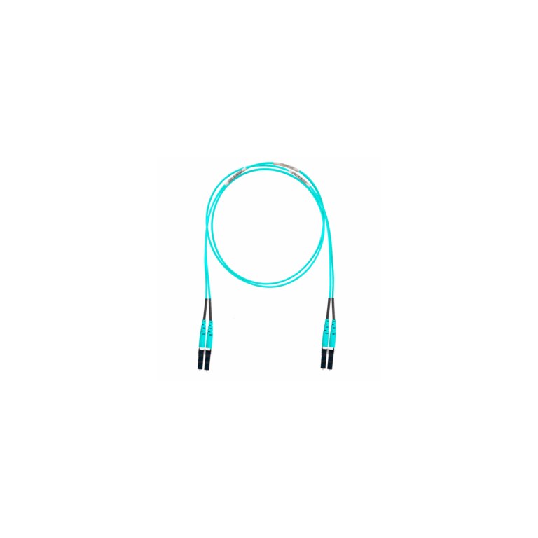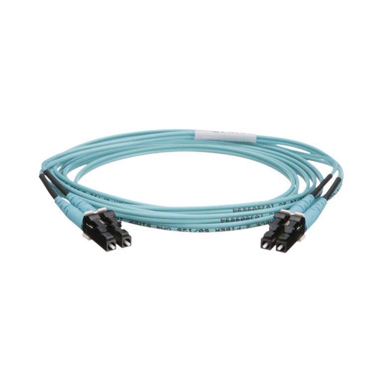 Jumper de Fibra Óptica Multimodo 50/125 OM4, LC-LC Duplex, OFNR (Riser), Color Aqua, 4 Metros