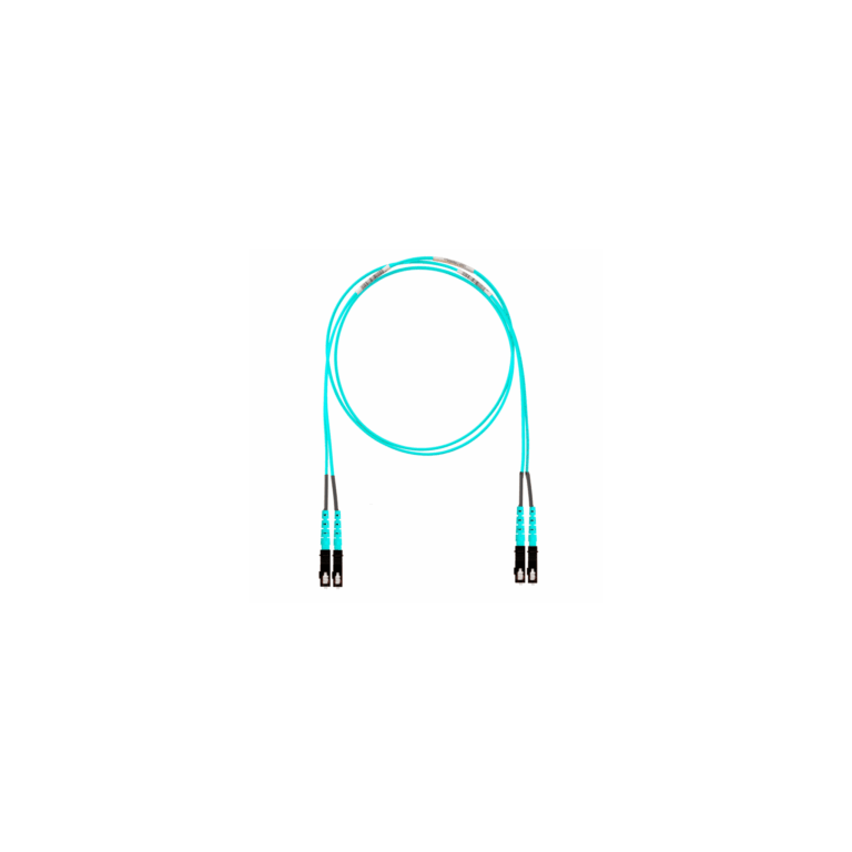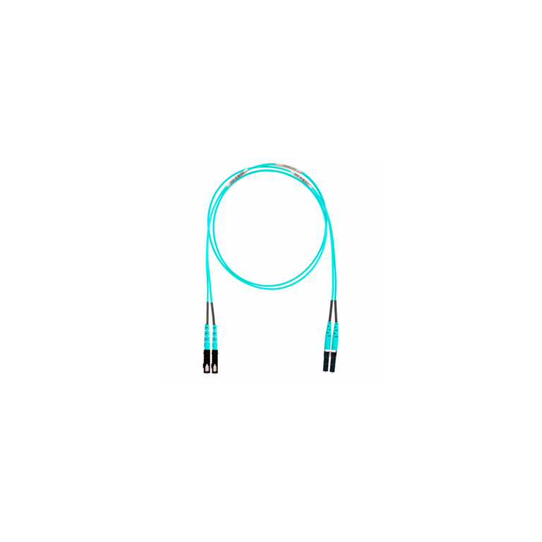 Jumper de Fibra Óptica Multimodo 50/125 OM4, LC-LC Uniboot Duplex, OFNP (Plenum), Color Aqua, 25 Metros