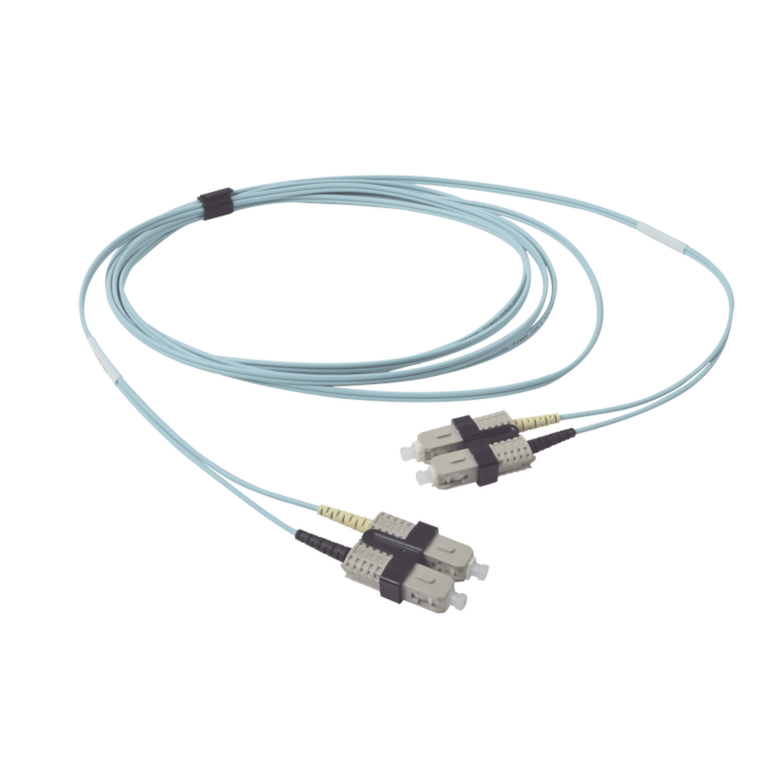Jumper de Fibra Óptica Multimodo 50/125 OM3 XGLO, SC-SC Duplex, OFNR, Color Aqua, 2 Metros