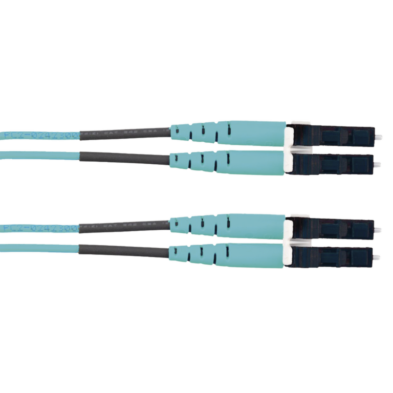 Jumper de Fibra Optica Multimodo 50/125 OM3, LC-LC Duplex, LSZH (Cero Halógenos), Color Aqua, 10 Metros