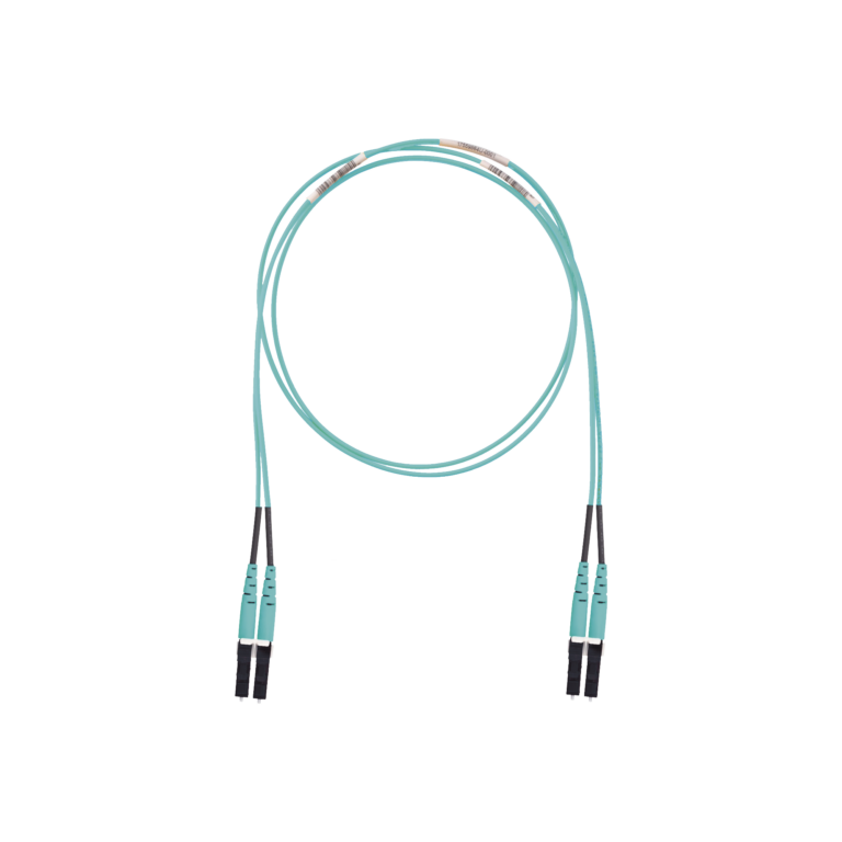 Jumper de Fibra Optica Multimodo 50/125 OM3, LC-LC Duplex, LSZH (Cero Halógenos), Color Aqua, 2 Metros