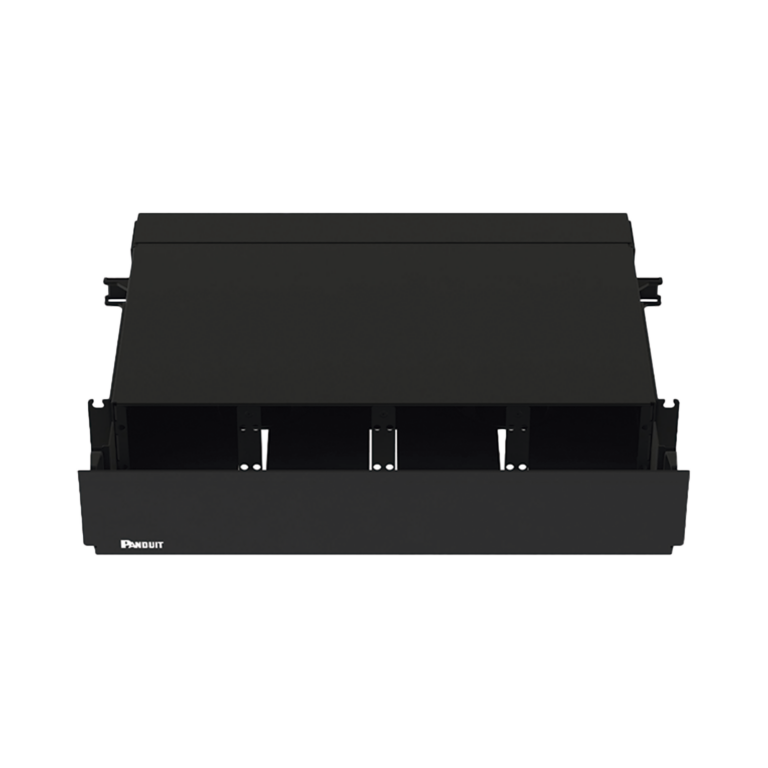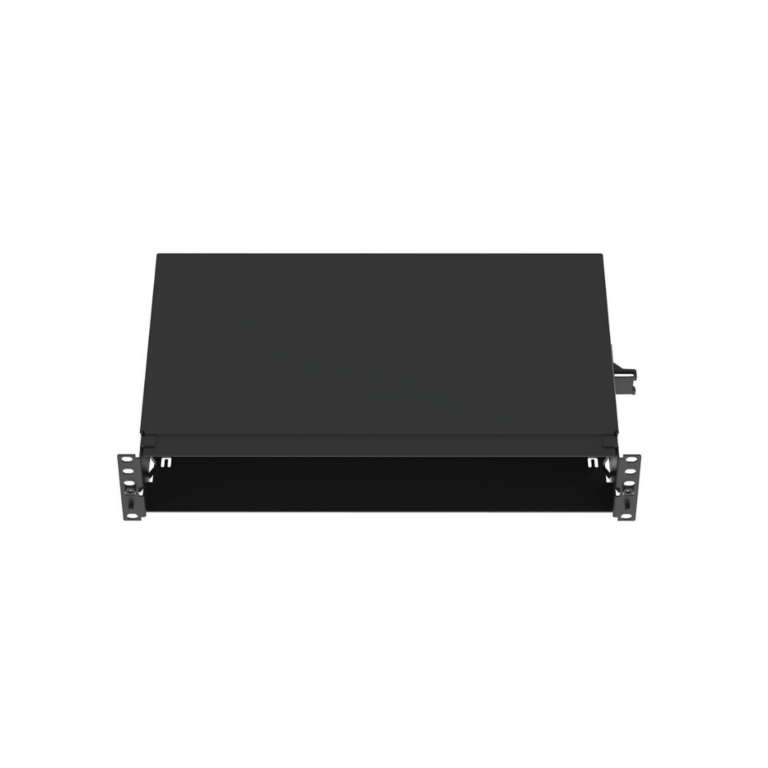 Panel de Distribución de Fibra Óptica, Acepta 4 Placas FAP o FMP, Bandeja Deslizable, Hasta 96 Fibras, Color Negro, 1UR