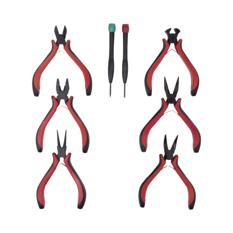 Juego de Herramientas con 6 Pinzas Eléctricas de 4.5″ + 2 Desarmadores de Precisión (Plano y Cruz).
