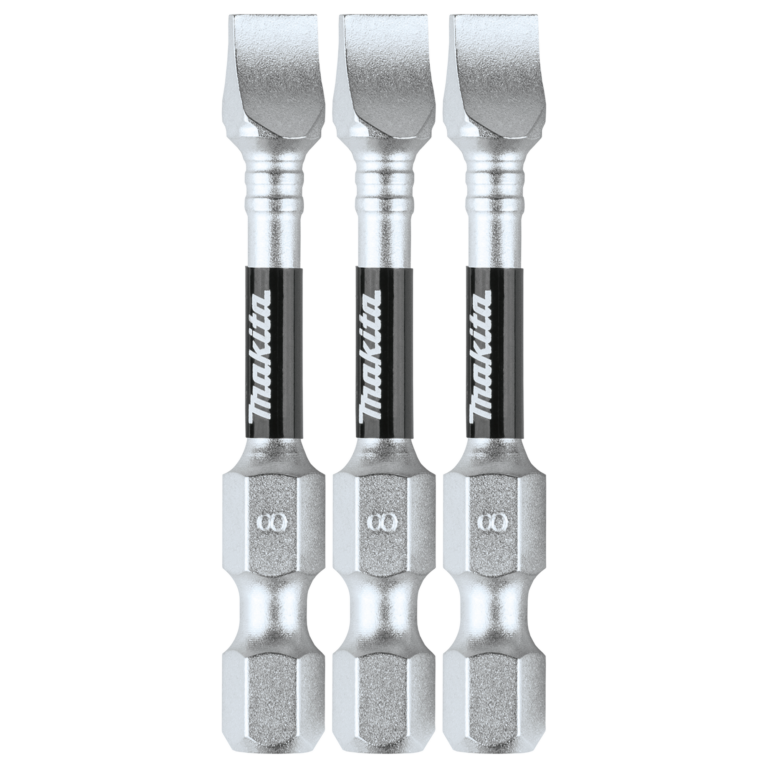 Punta plana para atornillar de 4-5 x 50 mm forma “E”, zanco tipo hexagonal de 1/4″ con punta magnética, blíster con 3 piezas.