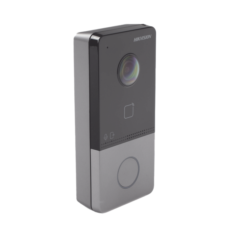 Videoportero IP 2 Megapixel / Llamada y Apertura Remota desde App Hik-Connect / PoE / Exterior IP65 + Antivandalico IK08 / 1 Departamento / Apertura con Tarjeta / Soporta 2 Puertas y hasta 6 Monitores