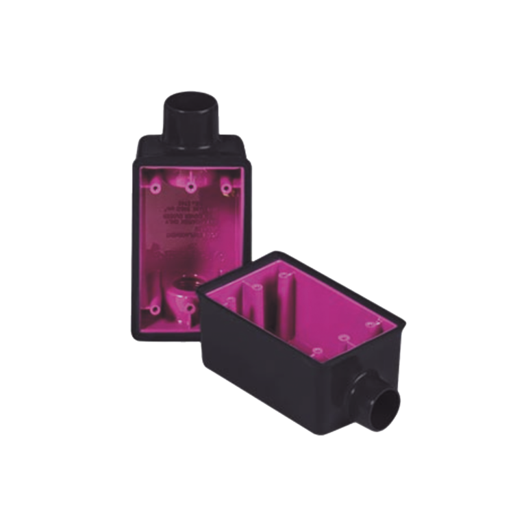 Caja Rectangular de 3/4″ / 1 Entrada / Con Recubrimiento exterior de PVC e interior Purpura.