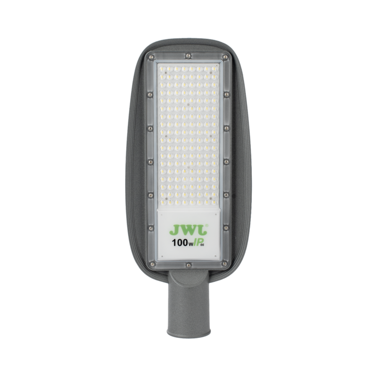 Luminaria LED de 100 W / 100 – 265 V CA~50/60 Hz / Fotocelda / Color Blanco/ Dimensiones 200 x 465 x 78 mm / Ángulo de Luz 135°.