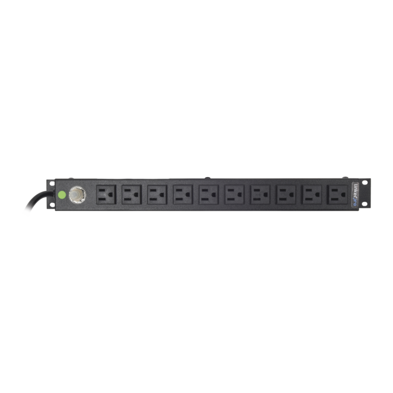Multicontacto Horizontal (PDU) de 10 Contactos (NEMA 5-15R) Rack 19″ 1UR. Voltaje Entrada/Salida: 120Vca/15A