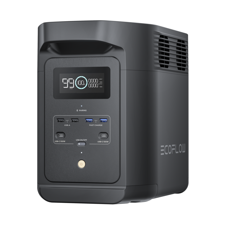 Estación de Energía Portátil Delta 3 1024Wh Litio LFP / 6 AC 1800 W (Max. 2200W) / 2 USB-C 100W / Capacidad para Aumentar Respaldo / Cargador de Coche 10A a 12.6V / Conectividad WiFi y Bluetooth (App) / Carga Solar 500W Max.