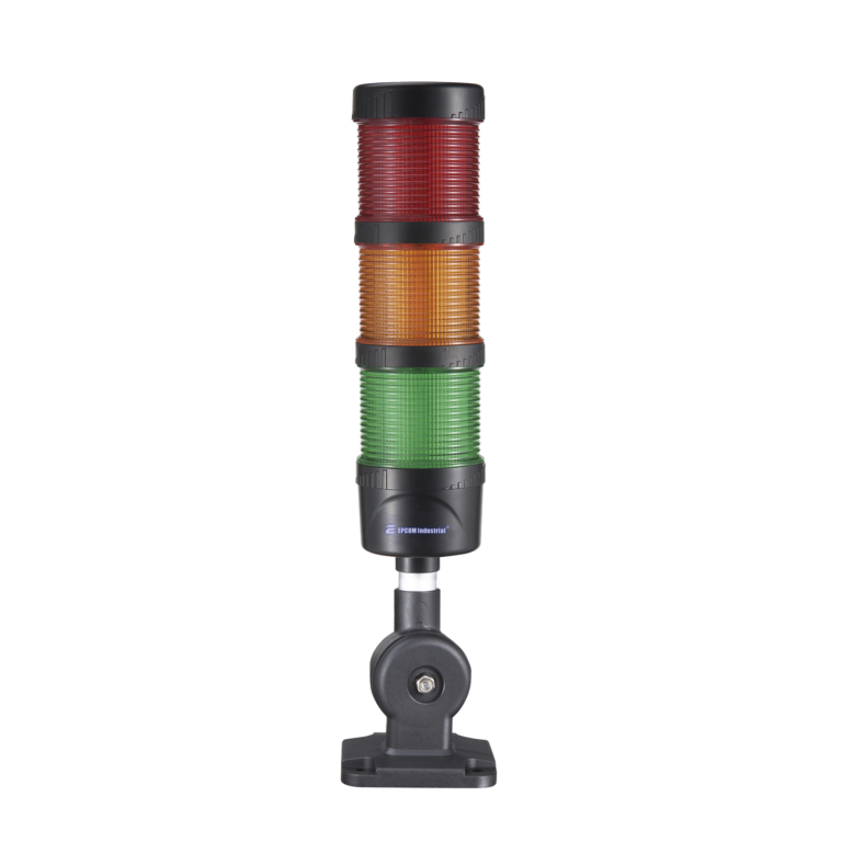Torre LED Indicadora de estado de 3 niveles color Rojo, Ámbar y Verde, con Buzzer integrado a 85 dB, a 24 VCD con Montaje incluido de 60 mm de diámetro