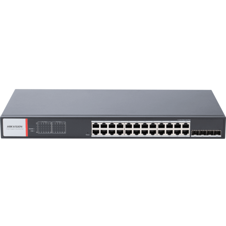 Switch Gigabit PoE+ / Administrable / 24 Puertos 1000 Mbps PoE+ / 4 Puertos SFP / Configuración Nube Hik-PartnerPro / Modo Extendido hasta 300 Metros / 370 W