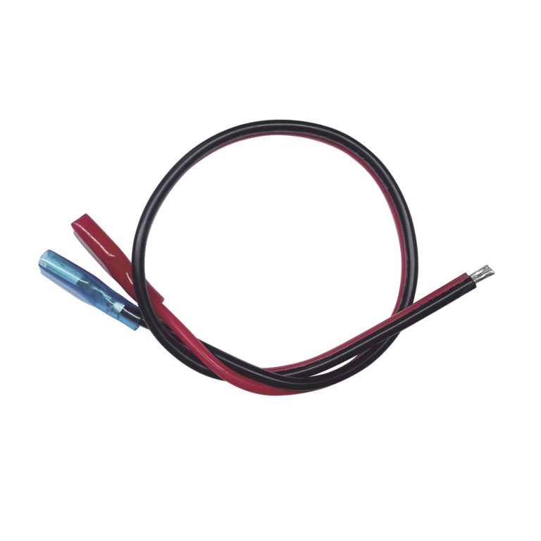 Cables en paquete dual / cable rojo y negro / 30 cm / terminal F1 en un extremo / puntas libres en el otro / Conexión a baterías de respaldo.
