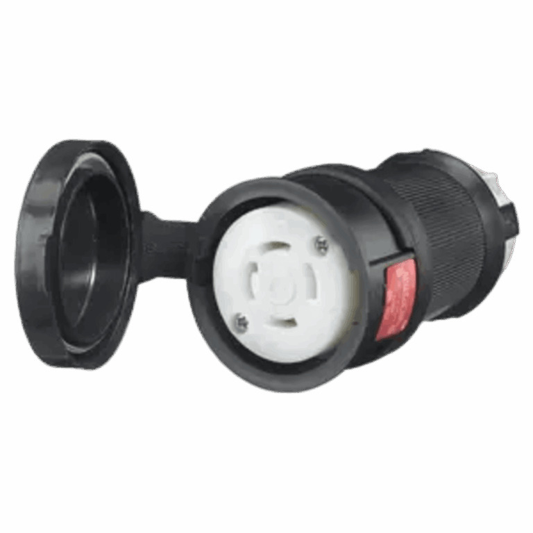 Conector Hembra con Bloqueo de Media Vuelta / 30 A 480 V CA / 3 Polos Trifásico / NEMA L16-30R / Terminal de Tornillo / Cubierta Hermética Negra / Color Blanco y Negro.