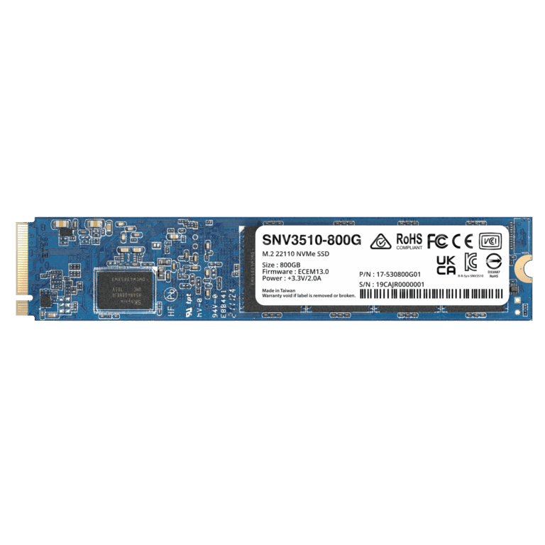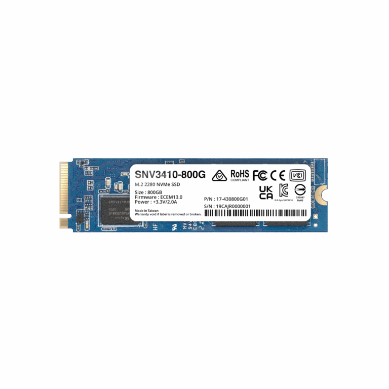 SSD NVMe M.2 SNV3410/3510 | SSD 800GB | Alto Rendimiento 400000 IOPS Lectura | 70000 IOPS Escritura | Resistencia 1022 TBW | Protección de Datos Integral | Análisis de Vida Útil | Diseñada para Sistemas Synology.