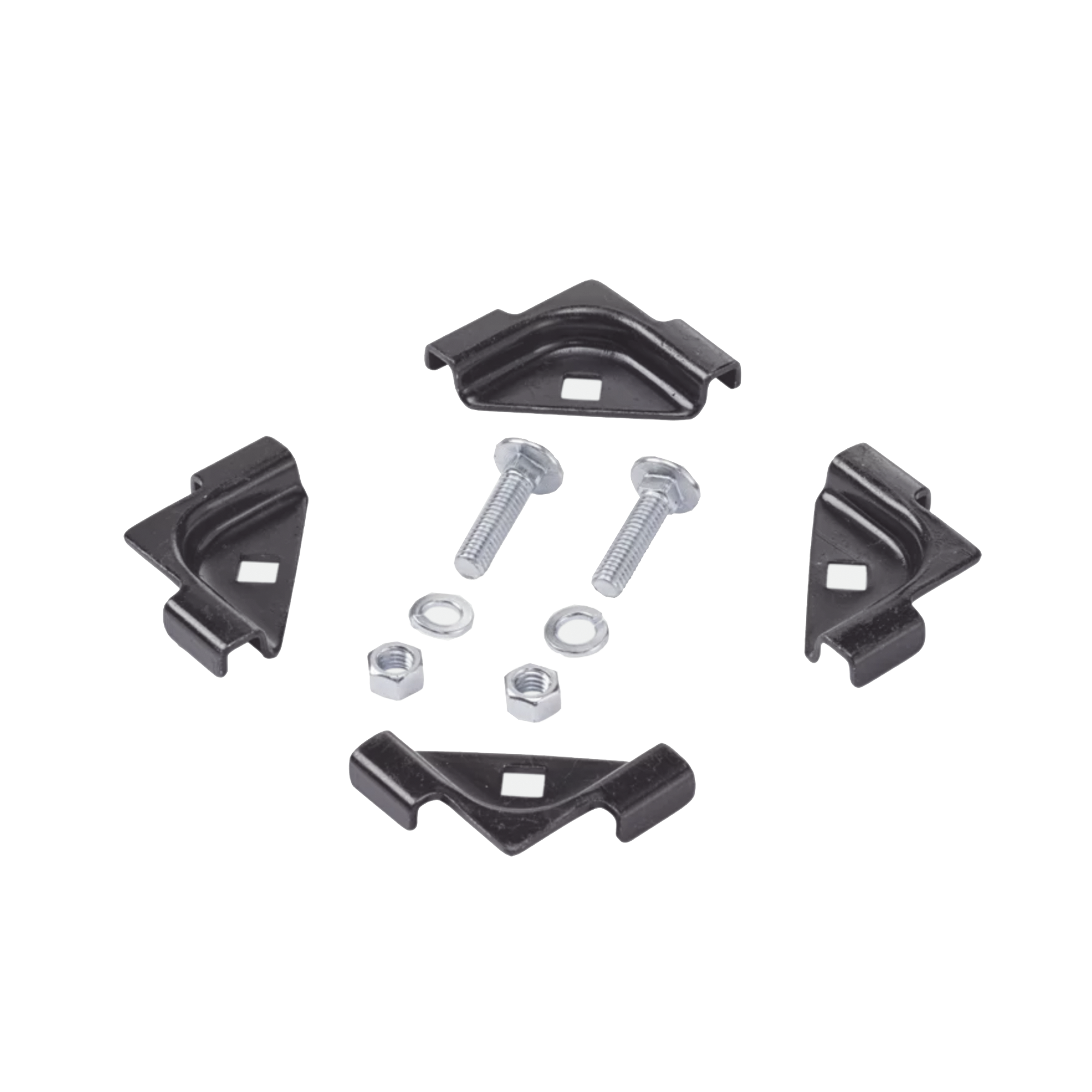 El kit de empalme de unión conecta dos secciones rectas de escalera en un ángulo de 90 grados en el mismo plano. Cada kit conecta una sección con otra. El kit incluye soportes y accesorios de montaje que conectan los extremos de una sección a los lados de otro soporte de escalera.