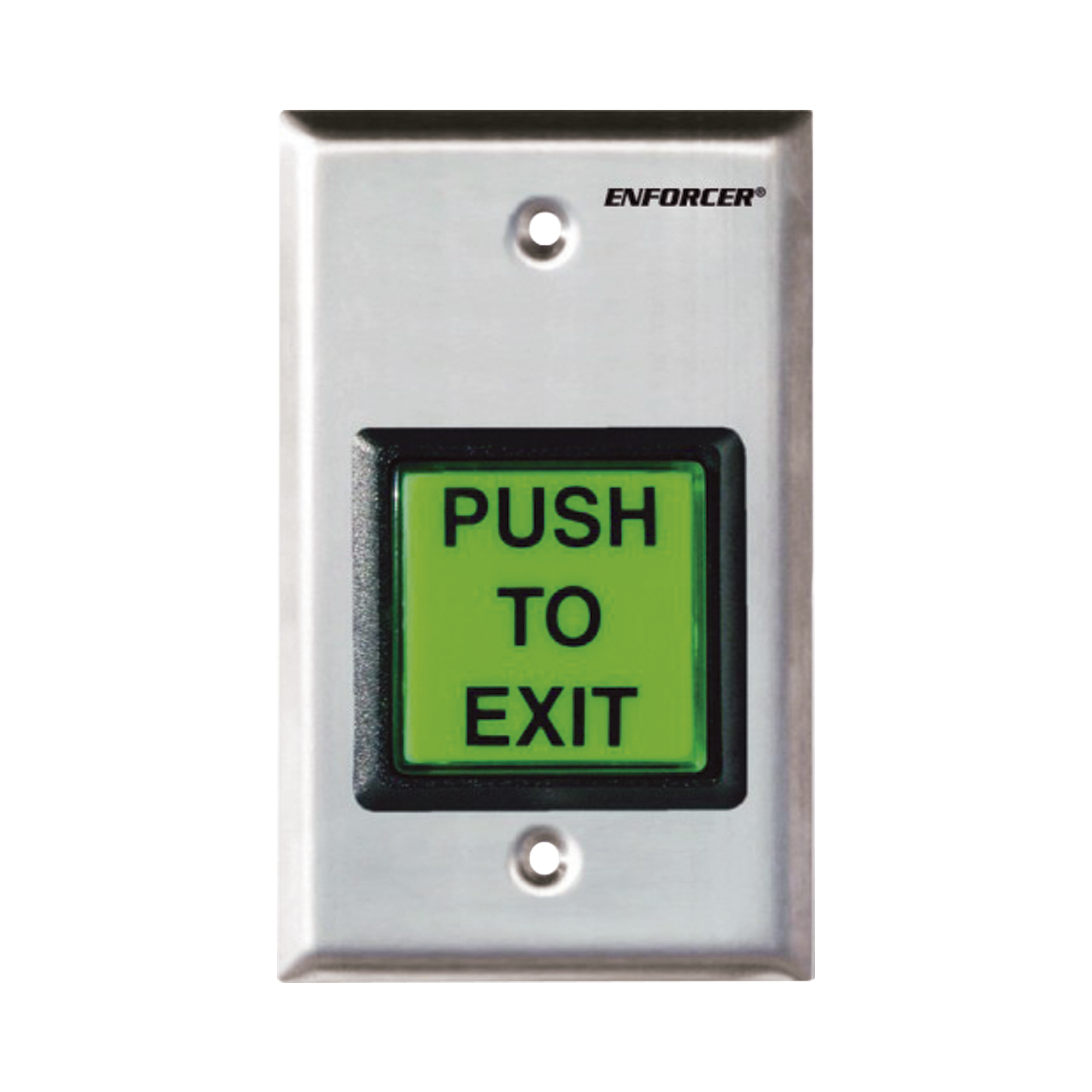 Botón de Salida / Con Iluminación / Con Placa de Pared de Acero Inoxidable / IP65 / Voltaje 12 / 24 Vcd / Mensaje de Idioma Intercambiable / 3 Placas de Idioma Incluidas
