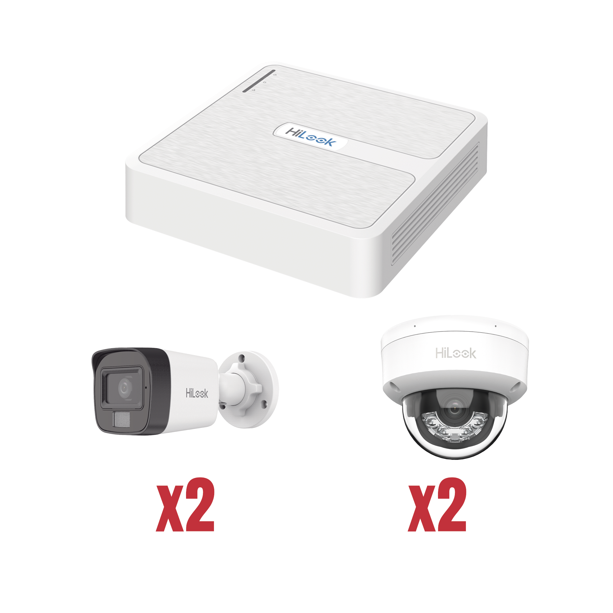 Kit IP 1080p (2 Megapixel) / NVR de 4 Canales con 4 Puertos PoE / 2 Cámaras IP Bala para Exterior con microfono y Dual light / 2 Cámaras IP Domo para Exterior