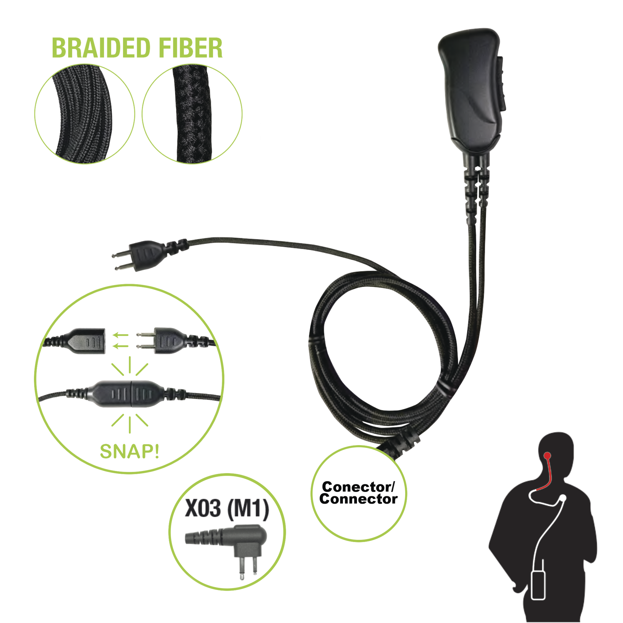 Micrófono con cable de fibra trenzada serie SNAP compatible con conector Motorola de 2 Pines.