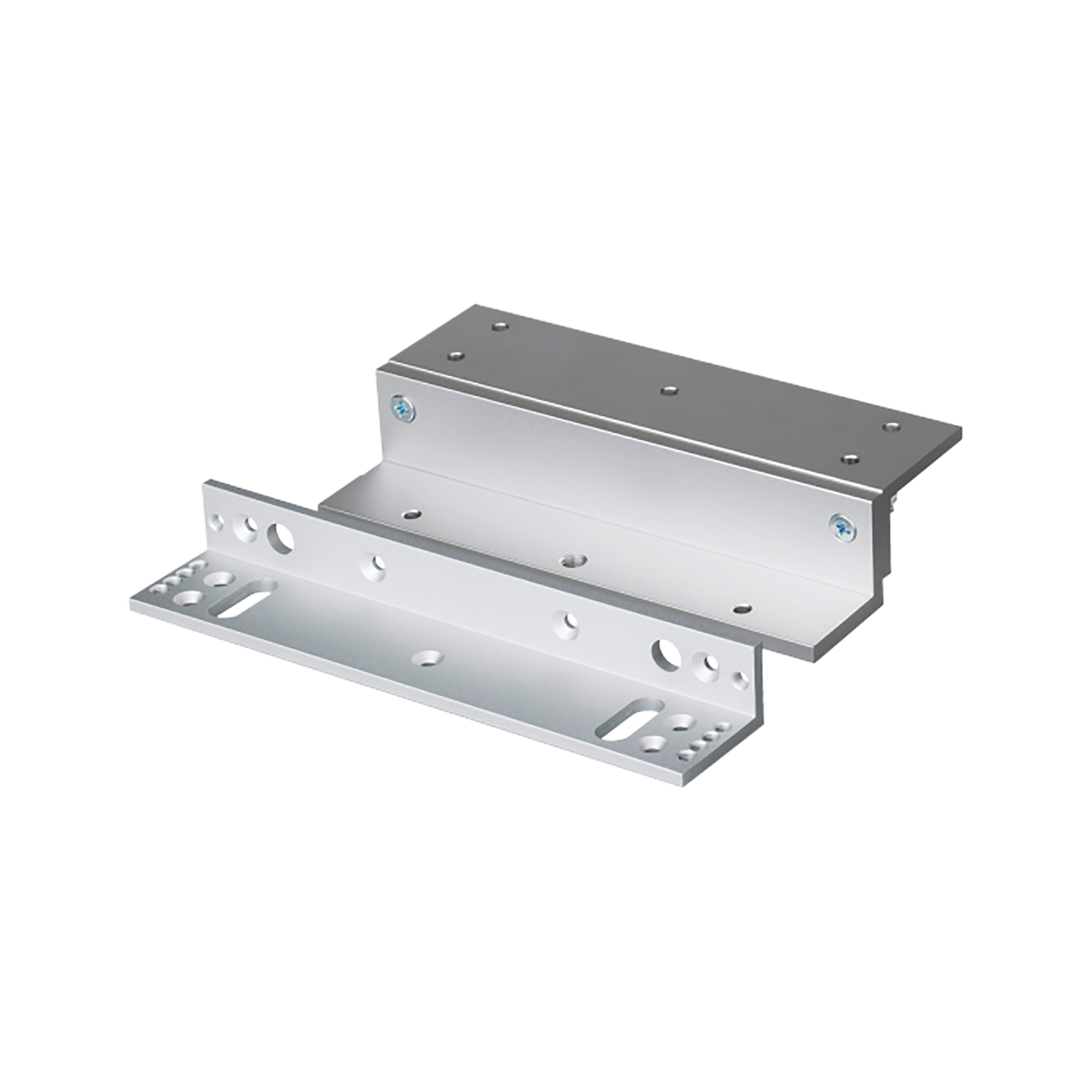 Todo lo indicado arriba incluye un soporte tipo “Z” y un soporte tipo “L” para montaje en puertas batientes hacia adentro. El soporte tipo “Z” consiste en dos partes y es ajustable, permitiendo un posicionamiento flexible de la placa de armadura. También incluye una placa para ocultar los tornillos de montaje.