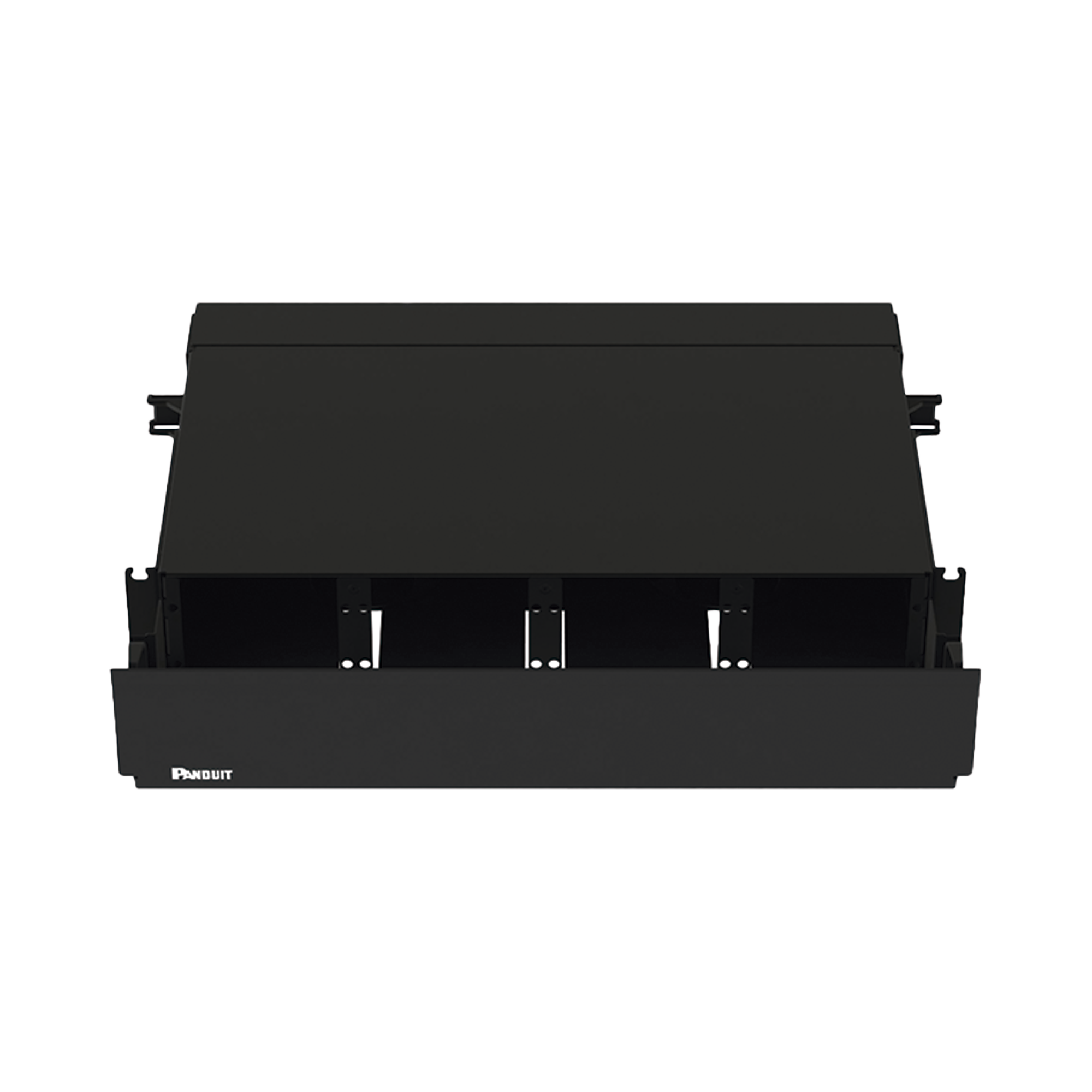 El gabinete para montaje en rack Opticom® de Panduit® garantiza la confiabilidad de la red al alojar, organizar, administrar y proteger hasta 192 terminaciones, empalmes, conectores y cables de conexión de fibra óptica. El FRE2U es de color negro, está hecho de acero y cuenta con 8 ranuras para casetes/FAP. Puede alojar 8 paneles adaptadores FAP, 8 casetes Opticom, 16 casetes HD Flex o módulos de empalme FOSM en un espacio de 2 RU. Se puede acceder fácilmente a las fibras a través de cajones extraíbles delanteros y traseros.