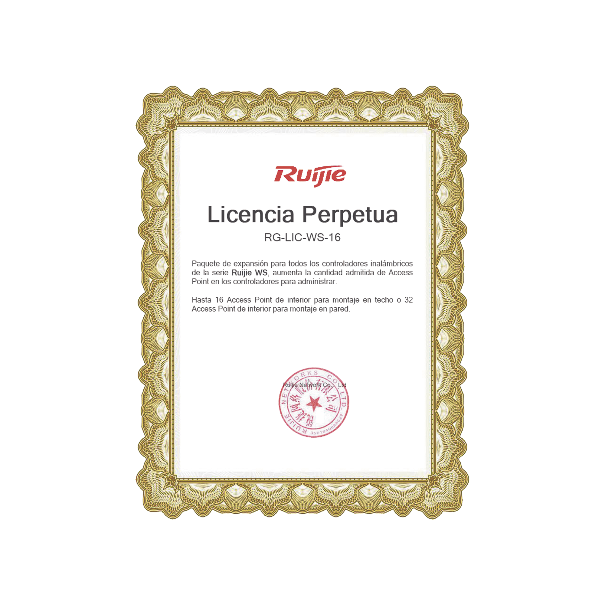 Paquete de expansión para todos los controladores inalámbricos de la serie Ruijie WS, aumenta la cantidad admitida de Access Point en los controladores para administrar.