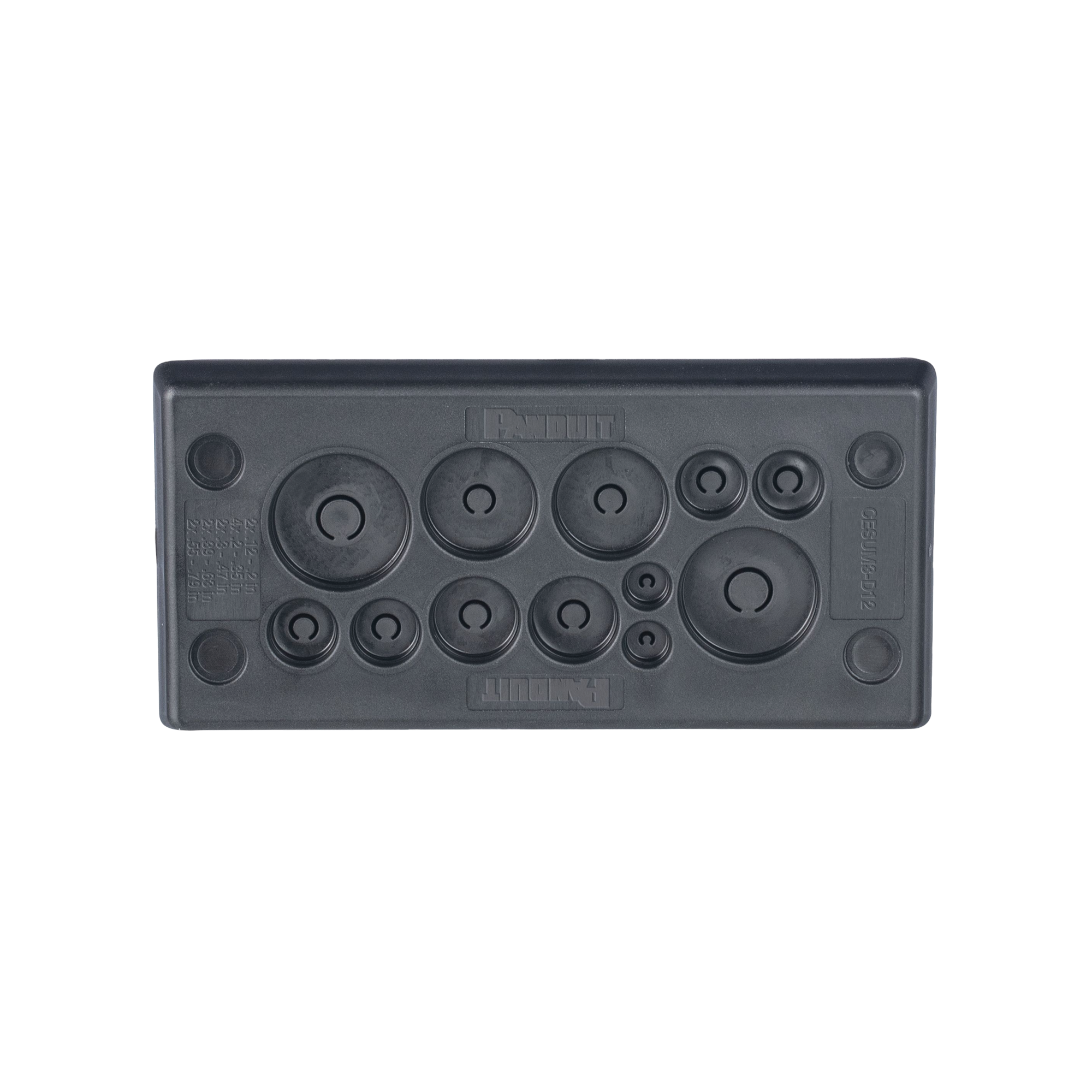 Pasacables Rectangular, IP66, 3,39″X1,42″,12 orificios, para Cables no Terminados. Color Negro.