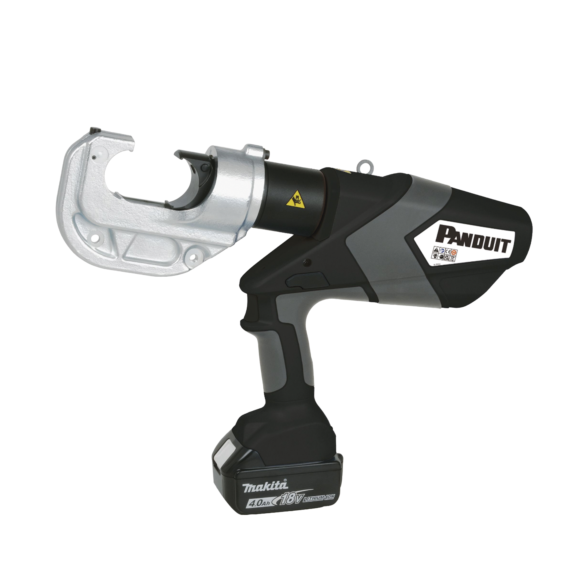 La herramienta para prensar BlackFin™ CT-2931/STBT funciona con baterías y prensa con solo tocar un botón. Los cables pueden terminarse rápida y fácilmente con un cabezal de prensado abatible que gira 355 grados. La herramienta para prensar tiene una fuerza de 12 toneladas y prensa la mayoría de los terminales, empalmes, terminales de desconexión, férulas y algunos talones de cobre Pan-Term™. Esta herramienta cumple con las normas de seguridad para productos eléctricos y mecánicos establecidas por la OSHA para herramientas eléctricas manuales y accionadas por motor.