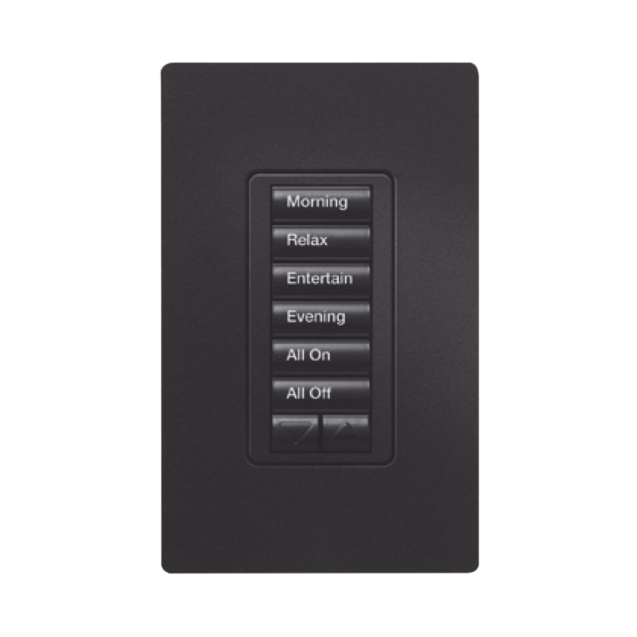 La botonera híbrida montada en la pared se instala en lugar de un interruptor de luz estándar para ofrecer atenuación de la iluminación a la que está conectada, además de los beneficios del sistema de una botonera montada en la pared. Los botones de la botonera pueden programarse para que controlen cualquier otro dispositivo de control de iluminación, además de las cortinas.