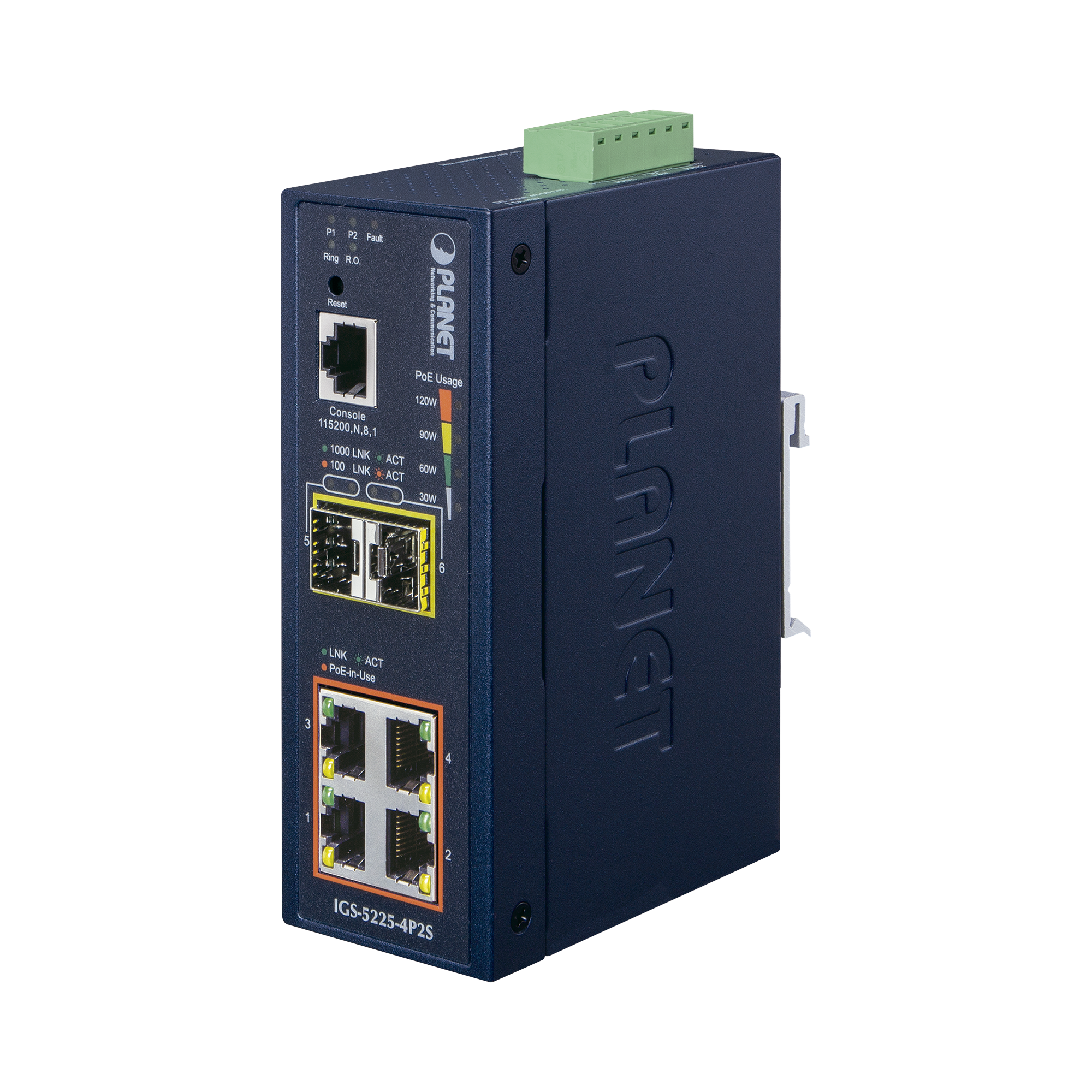 Switch Industrial Administrable Capa 2, 4 Puertos PoE 802.3af/at 10/100/1000T, 2 Puertos SFP 100/1000X
