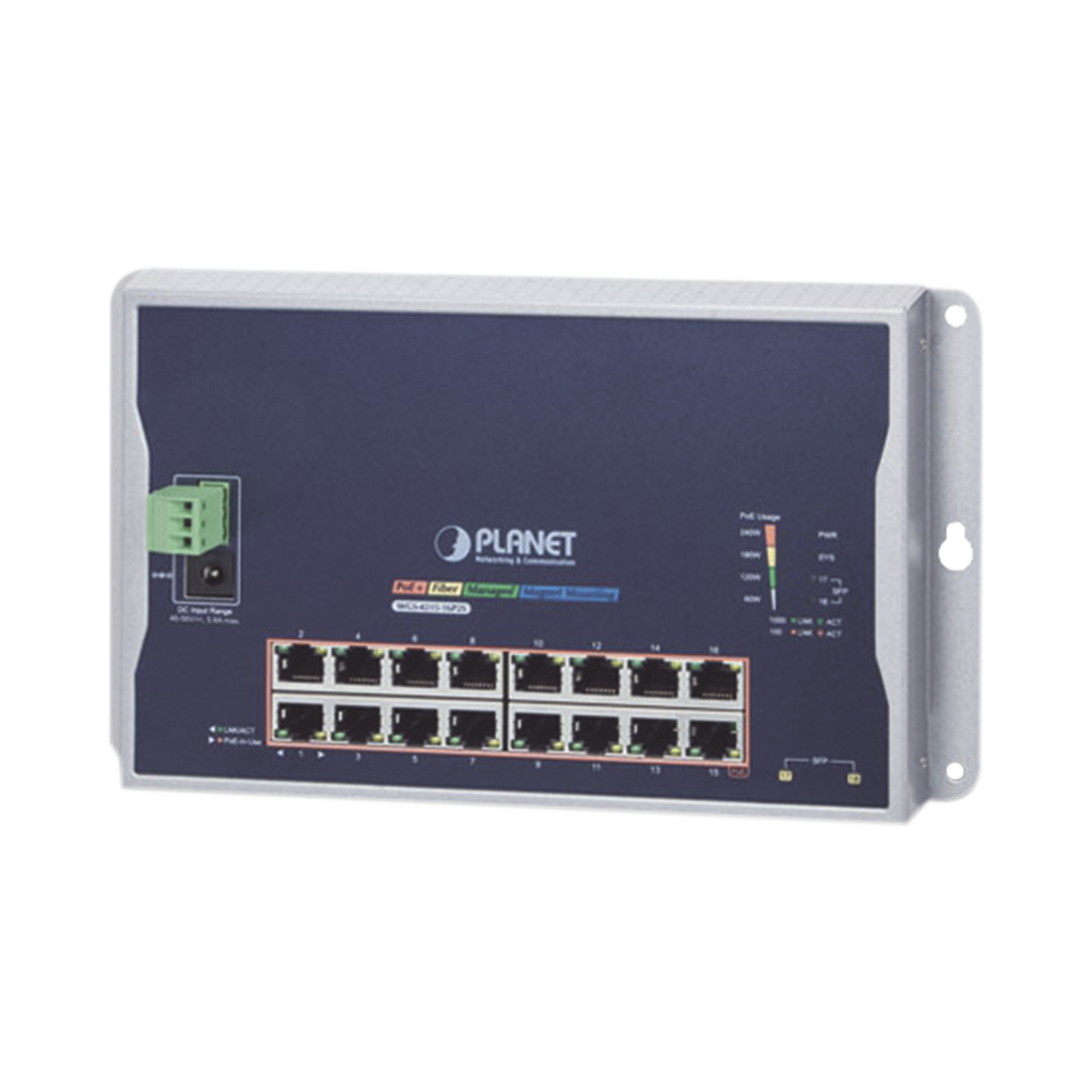 El WGS-4215-16P2S puede funcionar de forma fiable, estable y silenciosa en cualquier entorno sin afectar su rendimiento. Con un presupuesto de energía total de hasta 240 Watts para diferentes tipos de aplicaciones PoE y con una velocidad de red ultrarrápida y una temperatura de funcionamiento que varía de -10 a 60° C En una carcasa de metal IP40 plana pero resistente, el WGS-4215-16P2S es una solución ideal para satisfacer la demanda de las siguientes aplicaciones de red: