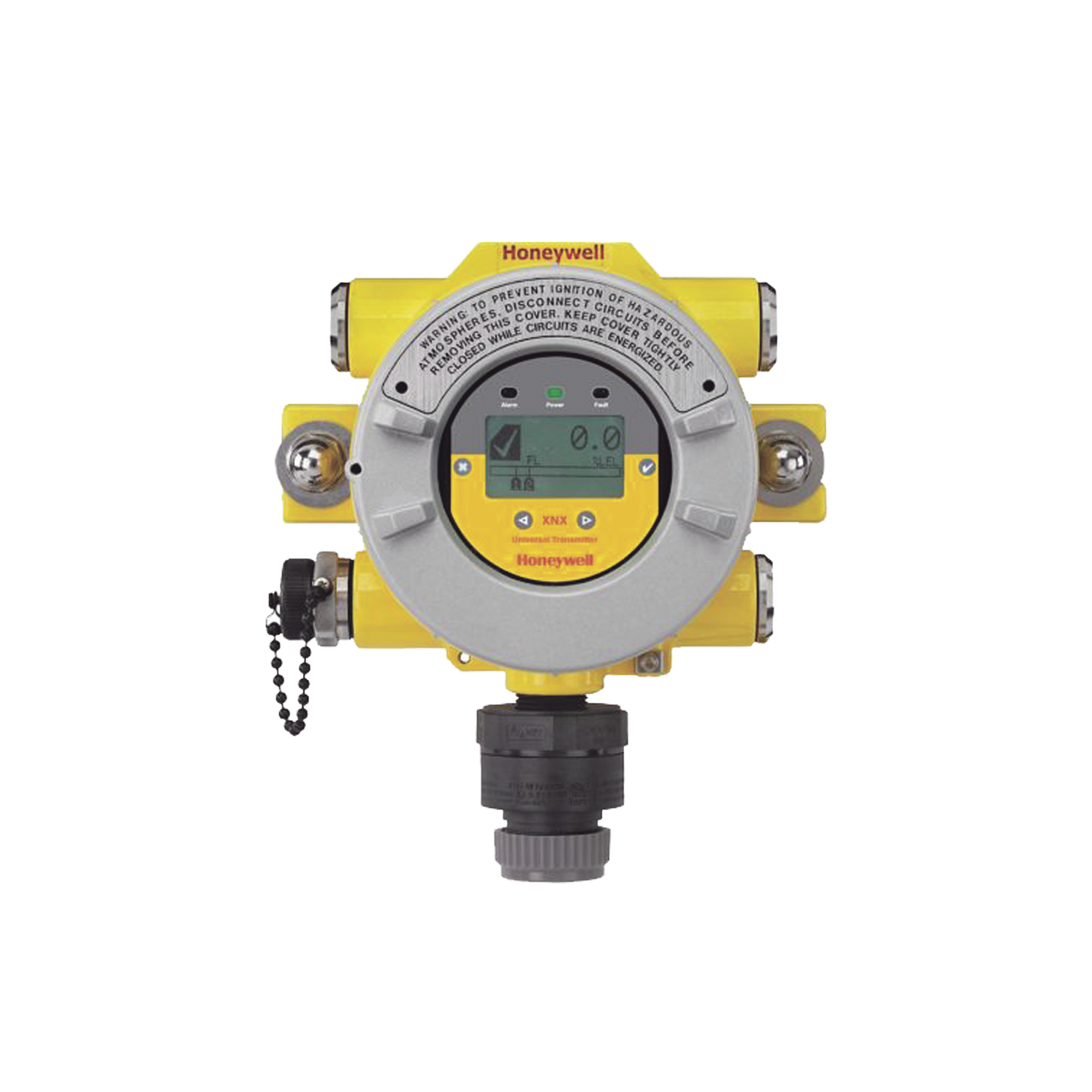 Equipo transmisor universal con 5 entradas para conductos/cable (2 a la derecha, 2 a la izquierda, 1 abajo), tipo NPT de 3/4 de pulgada, carcasa fabricada en acero inoxidable, interfaz de usuario por medio de una pantalla LCD estándar de 2.5 pulgadas de matriz de puntos de alta resolución con luz de fondo, información de visualización base de lectura de gas, nombre del gas y unidades de medición, estado de las fallas y las alarmas; cuenta con alarma discreta y notificación de estado, acceso mediante varilla magnética con destornillador para terminales (suministrados con cada unidad) con interfaz de 4 botones, confiable no intrusivo, señal con salida de lazo, de corriente análoga de 0 a 22 mA, condiciones ambientales de temperatura de -40 °C a +65 °C (-40 °F a +150 °F); funcionamiento en humedad relativa de 20 a 90% (sin condensación), cuenta con clasificación IP66, tipo NEMA 4X; con un consumo de energía para sensor de punto infrarrojo de 9,7 W; Clasificado UL, CSA, FM y SIL2; Clase 1, División 1, Grupos B, C, D/Clase 1, Zona 1; rango de salida de 4-20 mA + HART.